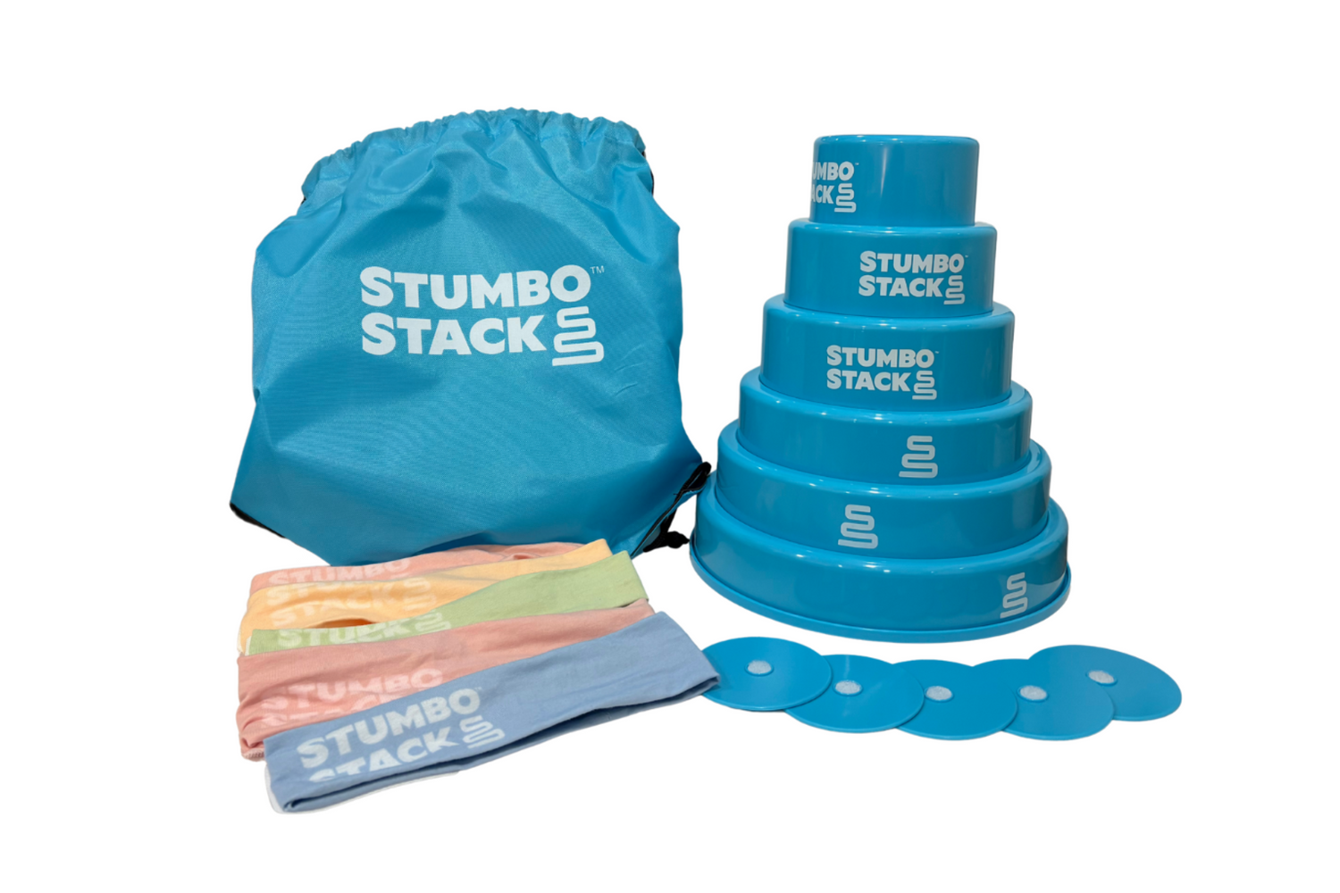 Setting up Stumbo takes less than ten seconds. Stack it up and toss on those headbands. It doesn't matter who goes first.